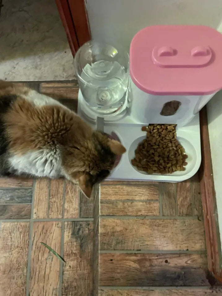"OMG, this feeder is a lifesaver! With my busy schedule, I don’t have to worry about my fur baby running out of food or water. It's super easy to clean, and I love that it's made from safe materials. I noticed my cat is happier and more independent now. Highly recommend!"